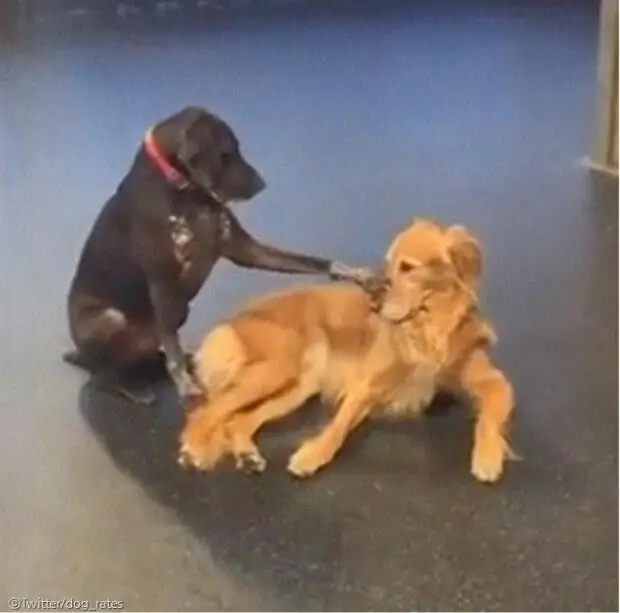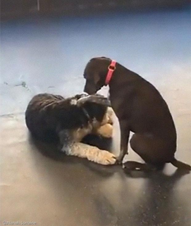 【引用:Bored Panda】幼稚園のスタッフであるスペンサーさんも、「ルビーは登園するたびにほとんど毎回、友達を撫でています」と語る。「まず兄のマイルズをなで、次に他の犬たちへ――まるで『今日も一緒にがんばろうね』と挨拶しているようなんです。」