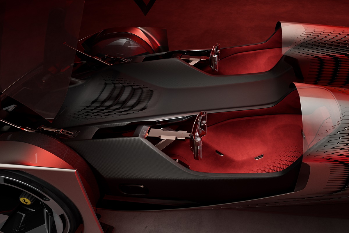 【引用:フェラーリ】F76の造形は伝統的なフェラーリのシルエットを継承しつつも、生成AIによるジェネレーティブデザインで再構築された。数千パターンの形状を解析し、最も空力効率の高い構造を仮想空間で具現化。現実の制約を超えたデザインは、極端に低いボンネットと流体的なサイドライン、そして空気の流れを視覚化した後部形状で構成されている。まさに「現実の空力を仮想へ移した」実験といえる。