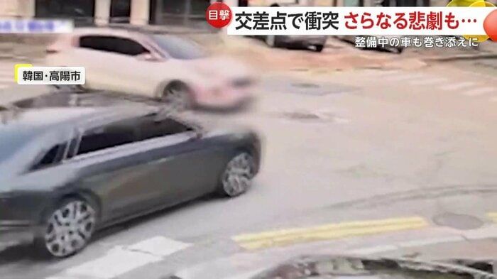 【引用:FNN】韓国・高陽市の交差点で撮影されたのは、事故の瞬間だった。交差点に進入した車2台が衝突した直後、それぞれの車にさらなる悲劇が待ち受けていた。