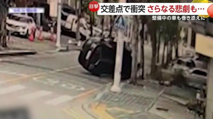 【引用:FNN】突然の出来事に整備士は、「もうやってられない」といわんばかりに持っていた工具を投げ捨て、事故現場を呆然と見つめていた。一方、事故を起こしたもう1台の黒い車は急加速して街路樹に突っ込み、横転してしまった。