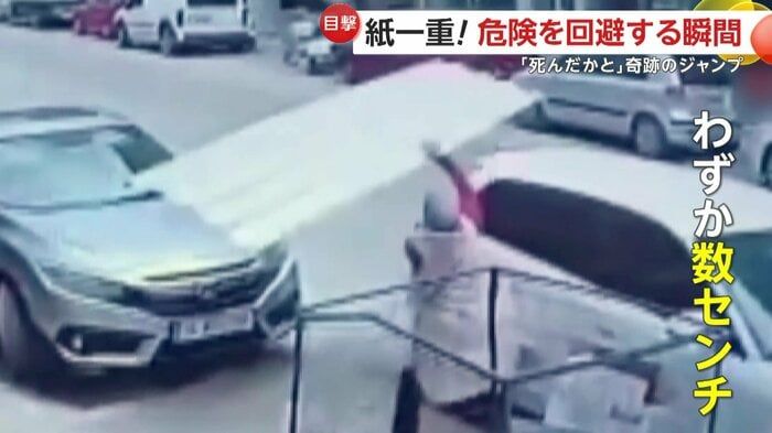 【引用:FNN】トルコで立て続けに“紙一重”の瞬間がカメラに収められた。北西部では、女性の目の前に長さ約2メートルの板が落下。ほんの数センチの差で直撃を免れた。別の都市では暴走車が突進し、男性がジャンプで回避する瞬間が記録された。男性は右足を骨折したが、機転によって命に別状はなかった。