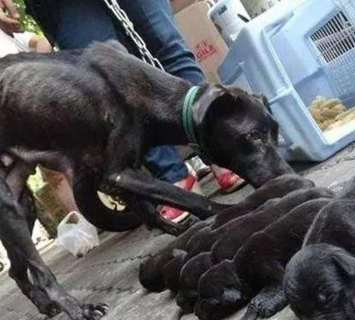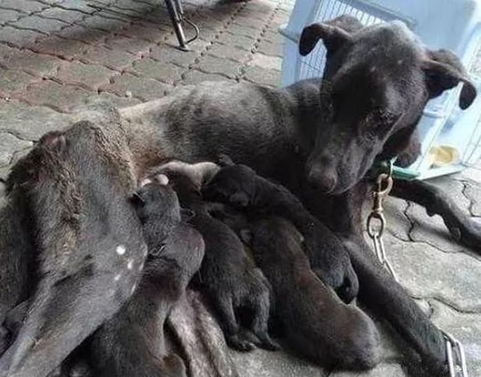 【引用:ソーフ】SNS上で広まった一枚の写真には、やせ細り肋骨が浮き出た体で子犬たちに母乳を与える母犬の姿が写っていた。その姿を見た人々は、自分がどんなに飢えても子を思う母の愛の深さに胸を打たれた。