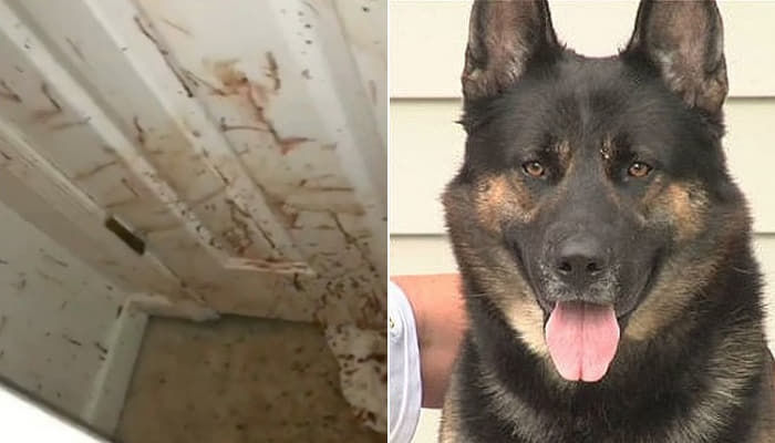 【引用:アニマルプラネット】侵入者を前にしても退かず、牙をむき出しにして抵抗したオーデン。激しい格闘の末、強盗の血が壁や床に飛び散り、家はまるで戦場のような状態になった。だが、オーデン自身は傷一つ負わなかったという。トリスタンさんは当時を振り返り、「最初は恐怖で息を呑んだが、オーデンが無事で誇らしげに立っている姿を見て涙が出た」と語る。