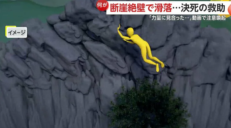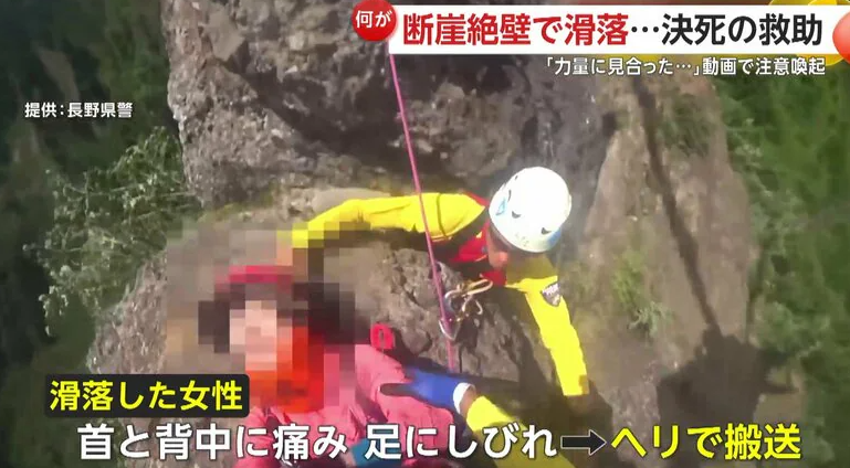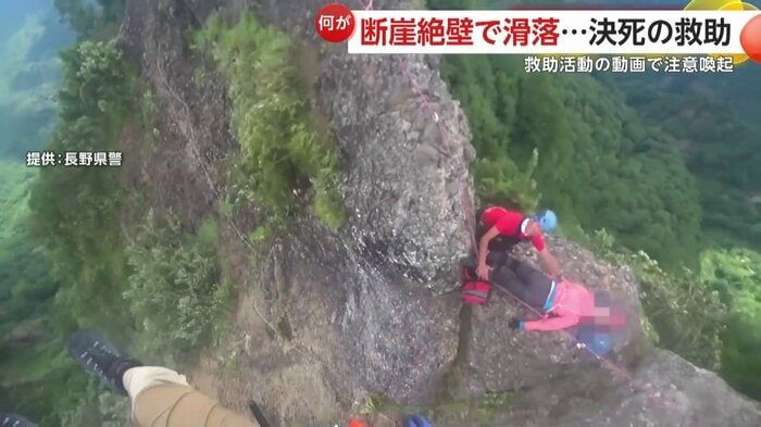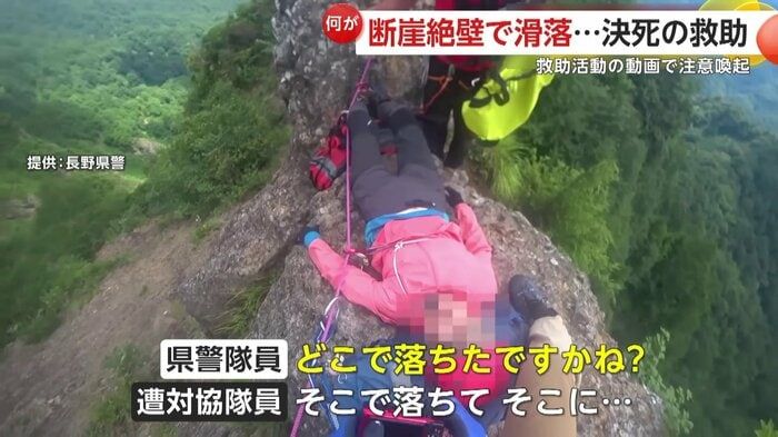 【引用:イット!】断崖絶壁で女性が一人横たわっている。この女性は長野市の戸隠山で滑落した登山者である。長野県警は、実際に行われた救助活動の様子を公式「YouTube」で公開し、登山者に向けて注意を呼びかけている。動画は、危険な登山ルートでの事故の危険性を伝える内容となっている。