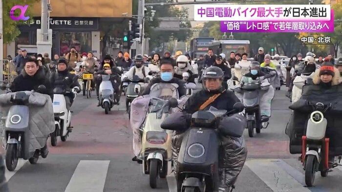 【引用:Live News α】EV大国・中国では、街を走るバイクの多くがすでに電動化されている。政府の環境規制や補助制度の後押しに加え、1台数万円という手頃な価格が普及を後押しした。現在、国内の保有台数は3億台を超え、都市部では日常の移動手段として定着している。
