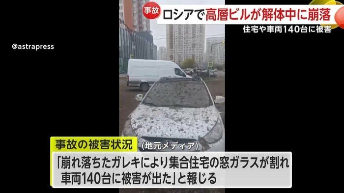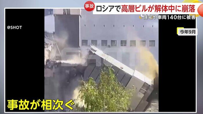 【引用:FNN】一方、ロシアでは11日正午ごろ、モスクワ中心部から約25キロ離れたクラスノゴルスク市の屋内型スキーリゾート解体現場で、最上階の建材が激しい衝撃音を伴って地上へ落下した。地元メディアの映像では、建物をロープのようなもので引き倒す作業が行われており、その途中で一部が制御不能となり崩れ落ちた様子が確認できる。