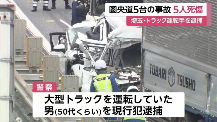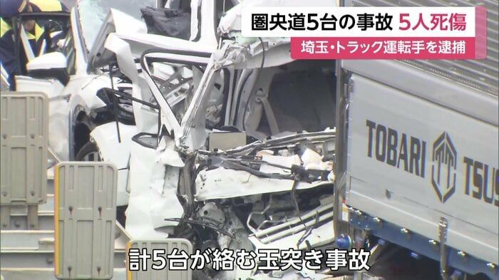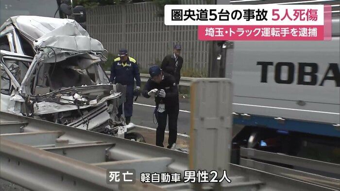圏央道で大型トラックが追突し“5台玉突き”に…軽自動車の男性2人死亡、トラック運転の男を逮捕