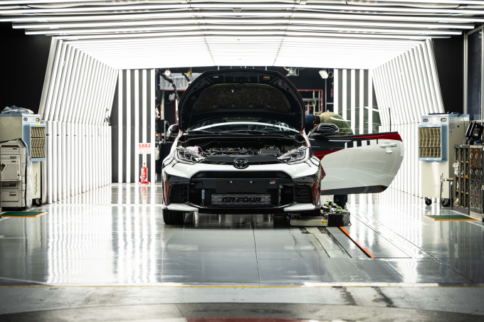 【引用:トヨタ】最終検査では、ラリー走行環境を想定し、2名のエンジニアが乗り込み、満タン時の重量を人工的に再現した状態で各部を測定。「測定→後輪調整→再測定→前輪調整→最終確認」という3段階プロセスを経て微細な偏差まで追い込む。すずき氏は「0.01㎜の誤差でも繰り返されると誰でも違いを感じる」と説明し、「特にサーキットではその差が鮮明に現れるため、生産過程で継続的に改善していくことが目標だ」と強調した。