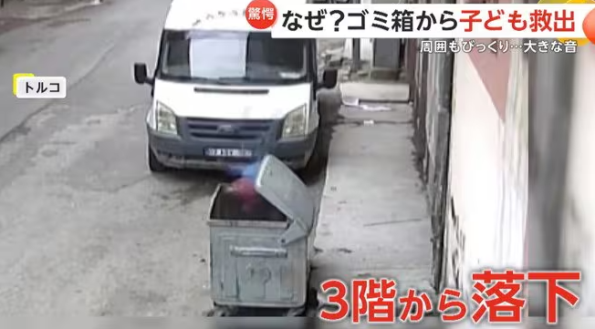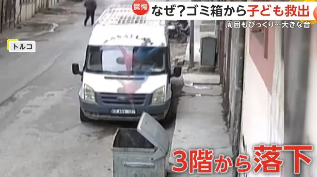 【引用:イット!】トルコで、2歳の子どもが3階のバルコニーから転落するという危険な事故が発生した。落下の瞬間は監視カメラに記録されており、子どもは建物前の路上に設置されたゴミ箱の中へ落下した。現場には凄まじい衝撃音が響いたが、幸い命に別条はなかった。