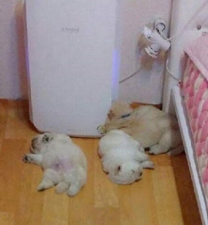 【引用:オンラインコミュニティ】寒さを感じるのは愛らしい赤ちゃん犬たちも同じだ。この子犬たちの飼い主は、犬たちが寒がるかもしれないと思い、外出前に暖かくボイラーをつけて出かけた。そして数時間後、帰宅した飼い主はドアを開けるや否や心臓を掴みそうになった。家中は暖かい空気で満たされていて、一番暖かい床の上には小さな子犬たちがあちこちに転がっているではないか。