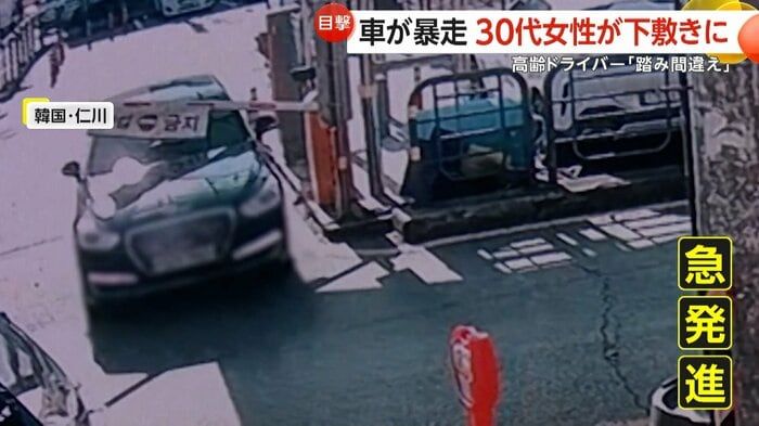 【引用:FNN】韓国・仁川で駐車場の精算中の車が突然発進し歩道に突っ込んだ。歩道を歩いていた母子が巻き込まれ、30代の母親が下敷きになったが一命を取り留めた。2歳の娘も首と足に重傷を負った。