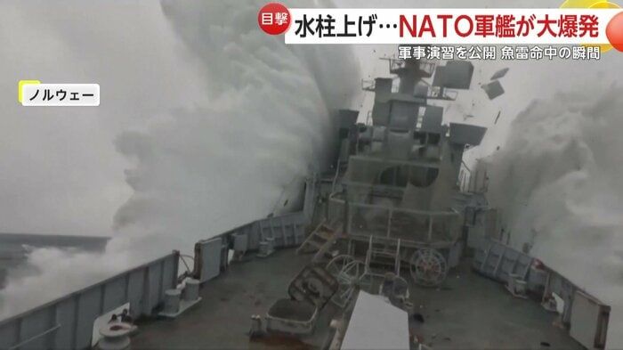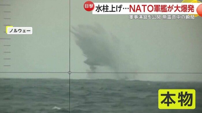 【引用:X】ノルウェーの海上で、艦艇が爆発し海に沈む様子がカメラに捉えられた。NATO(北大西洋条約機構)が軍事演習として行ったもので、潜水艦の打撃力を実証することが目的だった。