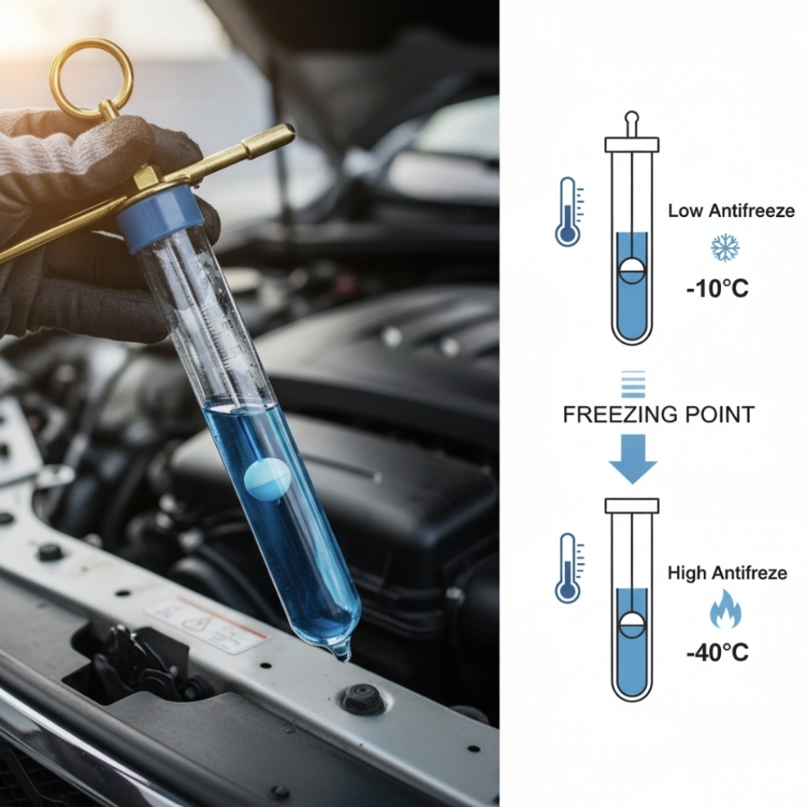【引用:AI生成】この装置を使用する主な理由は、クーラント液が適切な性能を維持しているか確認するためだ。不凍液の比率が低すぎると、冬季にクーラント液が凍りエンジンが損傷する可能性があり、逆に高すぎると熱交換効率が低下しエンジンの過熱を引き起こす可能性がある。