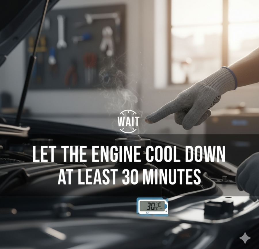 【引用:AI生成】クーラントテスターを使用する前には必ずエンジンを冷やさなければならない。熱いクーラント液を測定すると火傷の危険があるだけでなく、温度変化によって測定値が不正確になる可能性があるためだ。