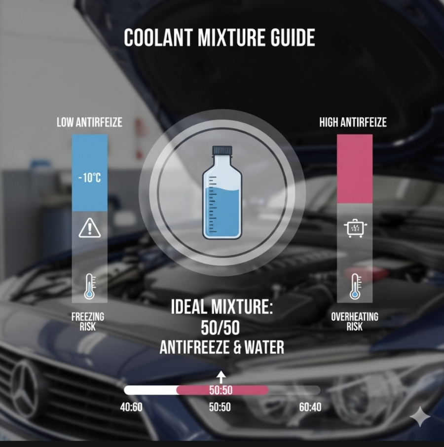 【引用:AI生成】テスターで測定した氷点温度が季節の最低予想温度よりも十分に低いか確認し、そうでない場合は不凍液の補充や交換が必要となる。混合比率は通常50:50から40:60が理想的であり、車両別の推奨比率は必ずユーザー説明書を参照しなければならない。