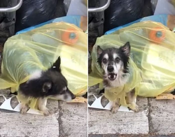 「私、ここにいるよ…!」ゴミ袋から必死に顔を出し、救いを求め泣き続けた捨て犬の運命は?