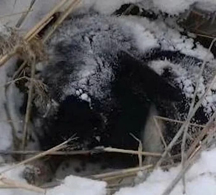 【引用:Golden Paws】寒い冬の日、崖のような場所で黒い毛の子犬が倒れているのを、通りかかった男性が見つけた。子犬は雪に体を覆われ、息も絶え絶えの状態だった。男性はすぐに妻に電話し、状況を伝えた。妻も現場に駆けつけ、二人で子犬を助けることにした。