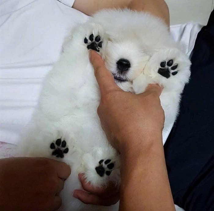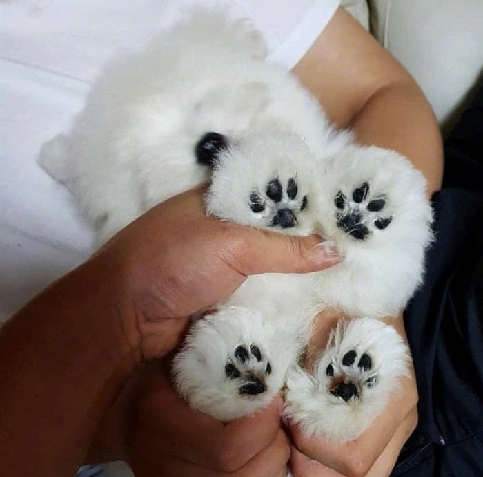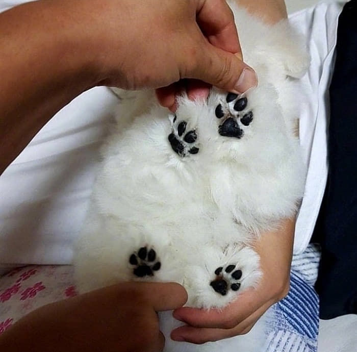 【引用:アニマルプラネット】 真っ白でふわふわな毛の中に埋もれているか、一層黒い肉球が視線を引きつける。ぷにゅぷにゅしていそうな肉球は指で押すと音が出そうである。
