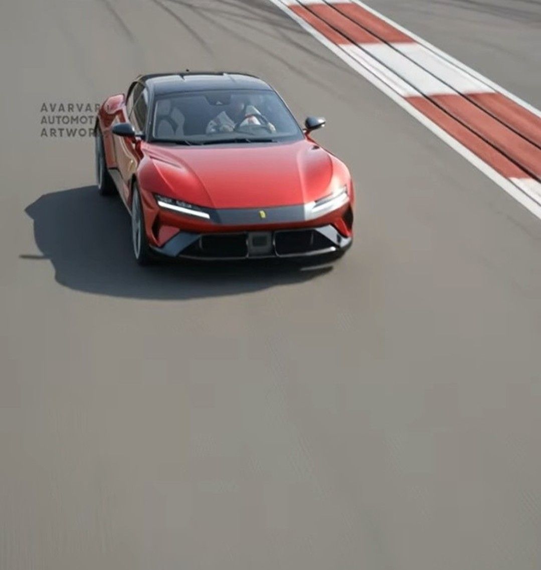 【引用:YouTube@avarvarii】公開された映像では、プロサングエを思わせる流麗なボディラインを持ちながら、電気パワートレーン専用の前後デザインが採用されていることが確認できる。GT的な余裕を感じさせるフォルムで、ブランド史上初のEVながらフェラーリらしさを強く残した印象だ。