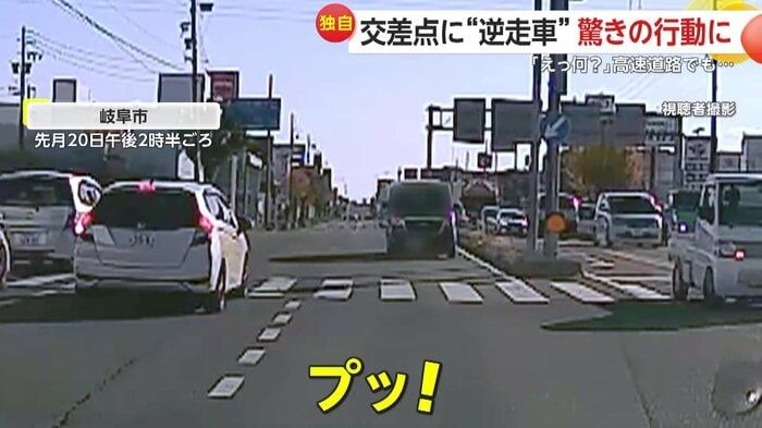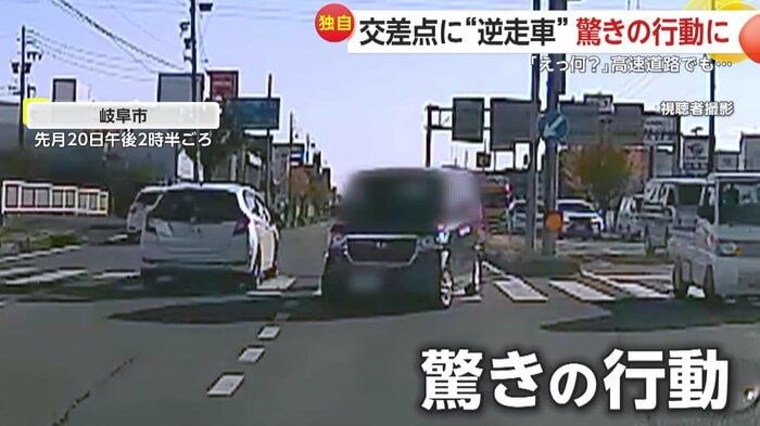 【引用:イット!】一方、岐阜市でも11月20日午後2時半ごろ、別の逆走車がカメラに捉えられた。信号が青に変わり車列が発進すると、正面から1台の車が向かってきた。撮影者が軽くクラクションを鳴らすと、逆走車はさらに不可解な行動に出た。まるで右折レーンにいるかのようにウインカーを点滅させながら、交差点の中央で停止したのだ。