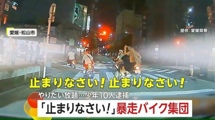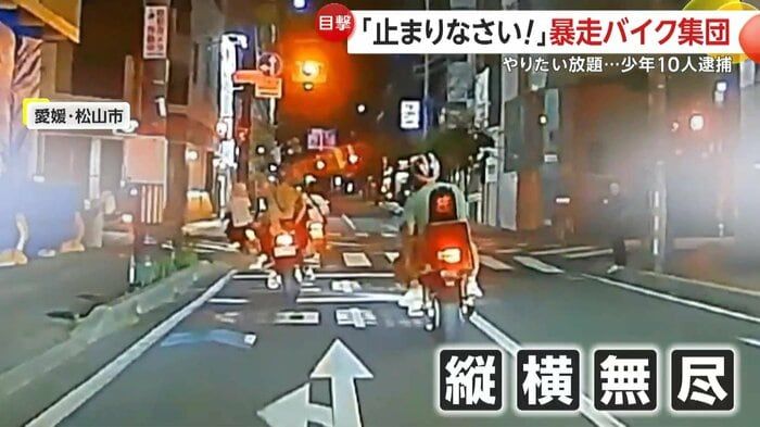 【引用:イット!】愛媛・松山市で深夜、商店街アーケード内を暴走するバイク集団が目撃された。響き渡るけたたましいエンジン音の中、現場には警察車両のサイレンも鳴り響いた。