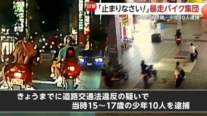 【引用:イット!】この映像は6月に撮影されたものであるが、警察は12月1日までに道路交通法違反の疑いで、当時15〜17歳だった少年10人を逮捕した。近隣店舗の従業員に映像を見せると、「やばいっすね、これは。結構人がいるときがあって本当に危険な行為なので、いや本当にやめた方がいいんじゃないかな」と話した。