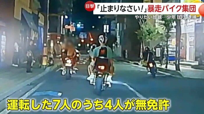【引用:イット!】警察によると、10人は知人同士などの集まりとみられ、運転していた7人のうち4人が無免許だったことも判明した。