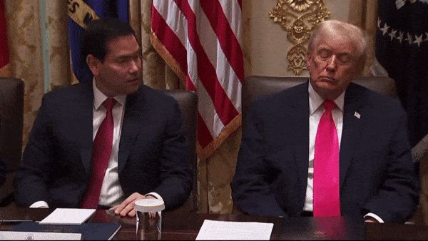 マルコ・ルビオ国務長官が発言している最中、トランプ氏は椅子にもたれかかり目を閉じていたが、突然姿勢を正しルビオ氏の方を向いたという。ハワード・ラトニック商務長官の報告時にも、目を細めたり閉じたままの様子が見られた。