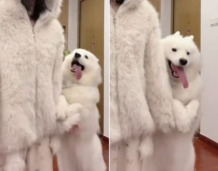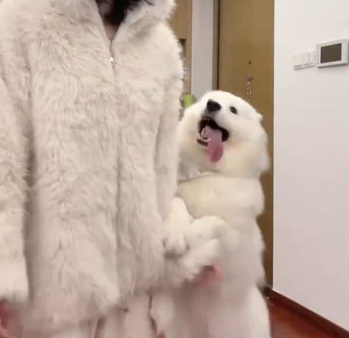 【引用:reddit】実際に対面した瞬間、サモエドの子犬は尻尾を激しく振りながら母親に飛びつき、抱きつき、においを嗅ぎ、全身で喜びを表しました。あまりに興奮したあまり、後ろ足で立ち上がり母親の体にぎゅっとしがみつき、離れようとしない姿まで見せます。その姿はまさに「ママ!本当にぼくの仲間になってくれたんだね!」と叫んでいるかのようで、見ている人たちの心をときめかせました。