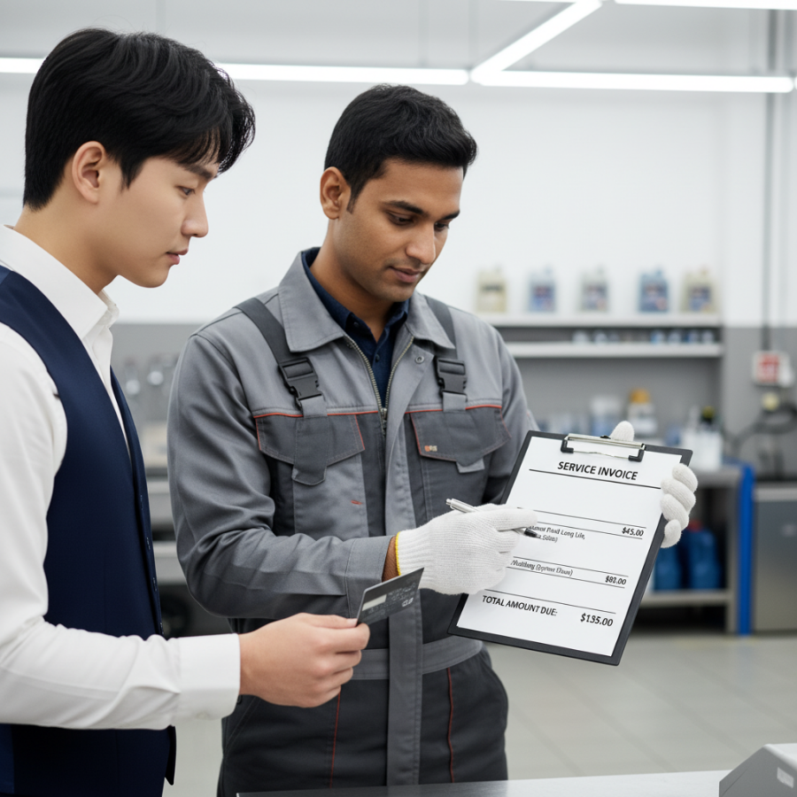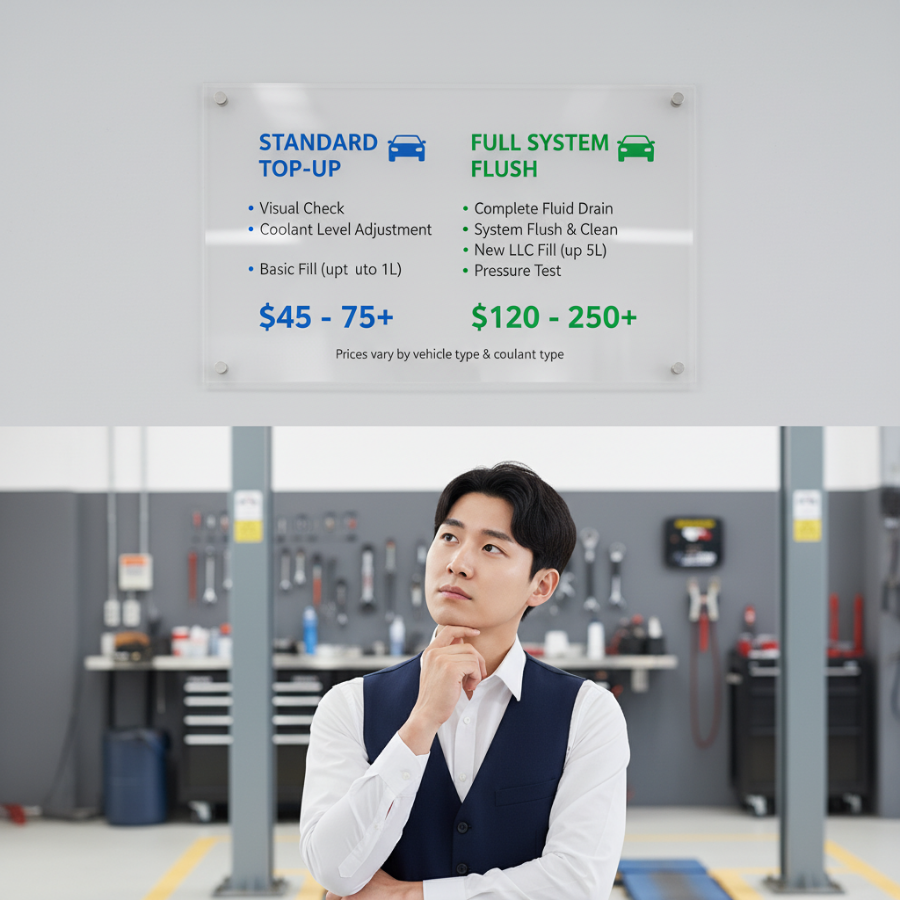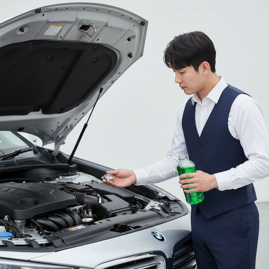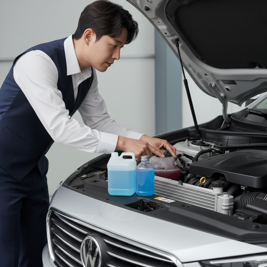 【引用:記事の内容と関連しAIツールで作成されたイメージ】この費用には、古いクーラントの完全排出、冷却ラインの洗浄、そして新しいクーラントの充填までを含む正式な交換作業が含まれる。単なる補充とは異なり、冷却系全体をリフレッシュする工程だ。