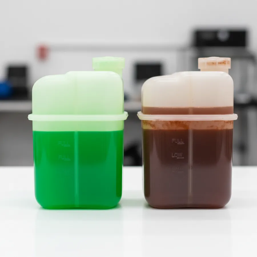 【引用:記事の内容と関連しAIツールで作成されたイメージ】クーラント液の色が濁った茶色や赤色に変化している場合、内部で錆や腐食が進行している可能性が高い。またサブタンクの液量がLOWラインを下回る場合は、漏れの有無を含めた点検が必要となる。