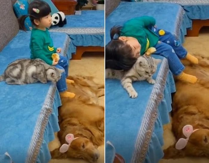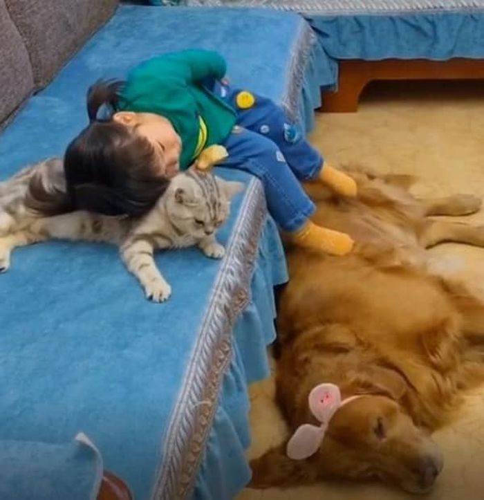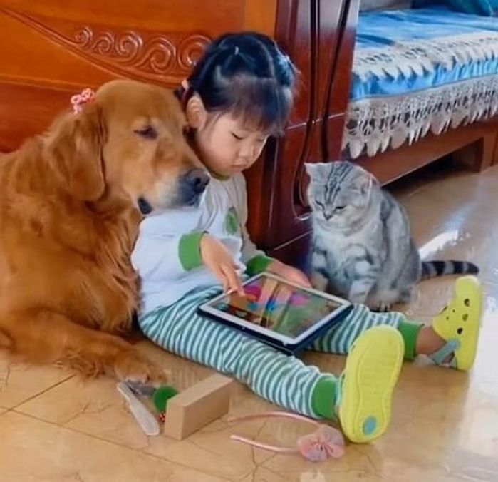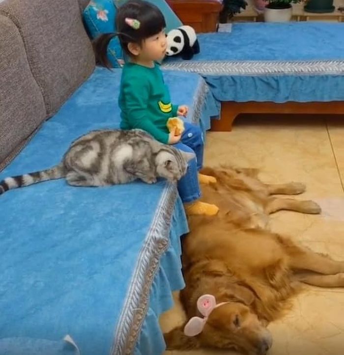 【引用:animalplanet】この日、女の子はソファでくつろぎながら好きなテレビ番組を視聴していた。娘の足元には犬がふかふかと横になって休んでおり、女の子のすぐ隣には猫が静かに座っていた。犬と猫が小さな飼い主をどれほど愛しているかがわかるように、二匹の動物は娘のそばから離れず、ぴったりと寄り添っていた。