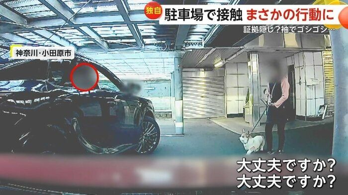 【引用:FNN】声を掛けた女性が立ち去ると、ドライバーは車内から身を乗り出し、接触した箇所を確認した。すると車を降り、自分の車の状態を確かめた後、すぐに服の裾で車体を擦り始めた。その後、相手の車のもとへ向かい、同様に裾でゴシゴシと擦る行為を約10秒にわたり続けた。