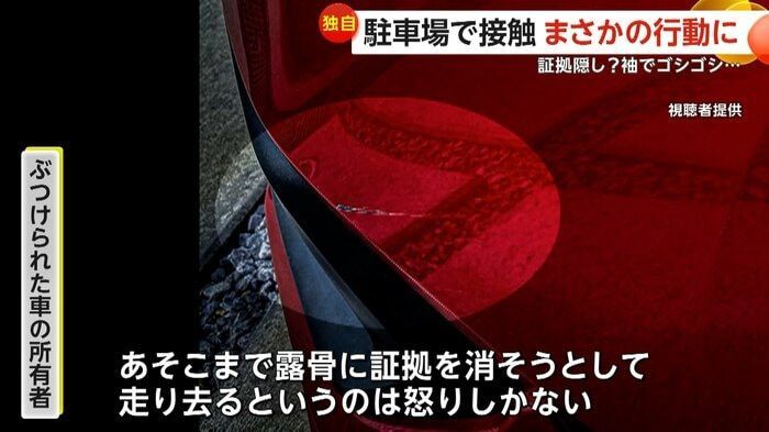 【引用:FNN】一度は自分の車に戻ったものの、再び被害車両の前に立ち、状態を確認したうえで、そのまま現場を離れた。被害に遭った車の所有者は、「証拠を消そうとしているように見えた。あそこまで露骨にやって走り去るのは悪質で、怒りしかない」と語った。