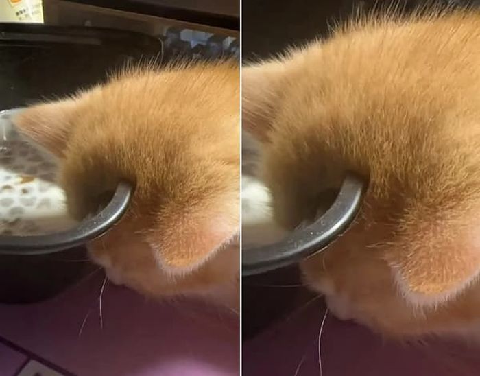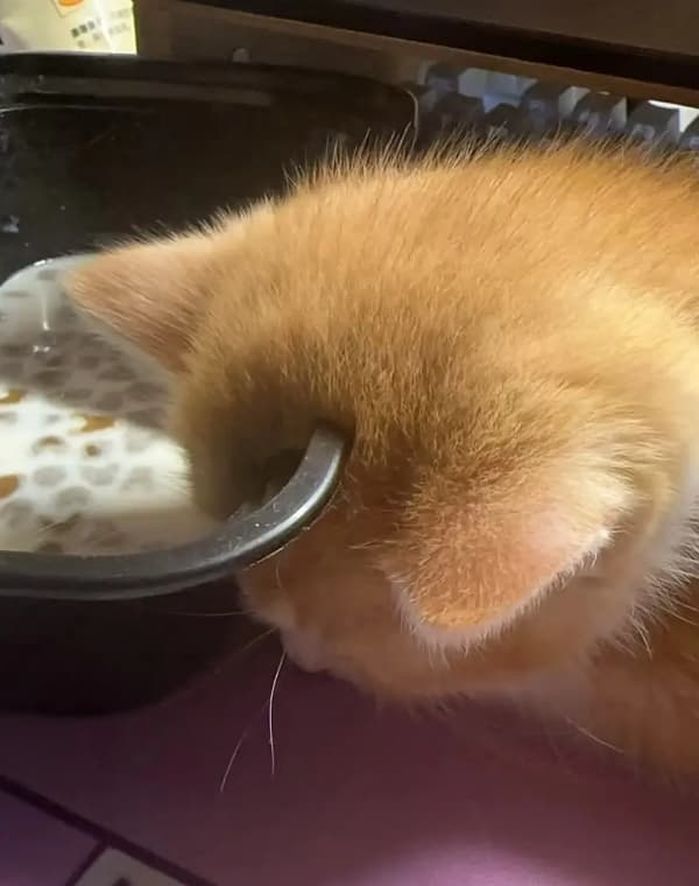 【引用:アニマルプラネット】ある女性は、自分が飼っているオレンジ色の毛の小さな子猫の写真をSNSに投稿した。公開された写真に映るこの子猫は、ご飯を食べている途中でそのまま寝てしまったような姿だった。外見は可愛くて愛らしい姿だったが、人々は写真をよく見ると驚いてしまった。なんと、子猫の頭に硬そうな金属製のご飯皿が貫通しているように見えたのだ。