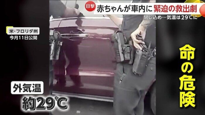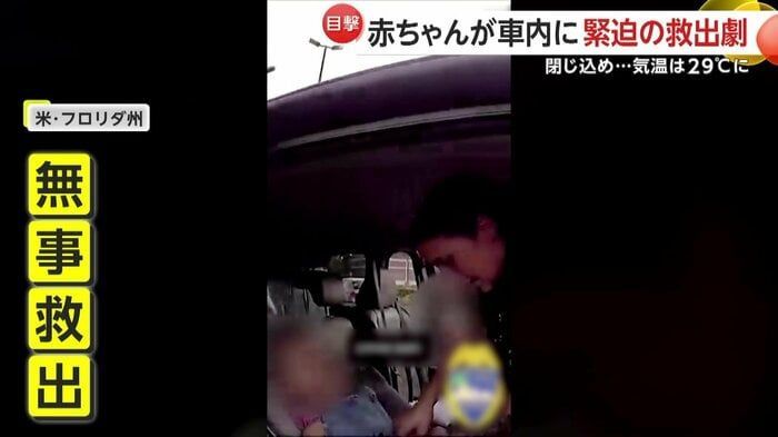【引用:FNN】アメリカ・フロリダ州で車内に閉じ込められた赤ちゃん。一刻を争う、緊迫の救出劇が始まった。救出劇の一部始終は、フロリダ州の地元警察が12月11日に公開した映像に記録されていた。