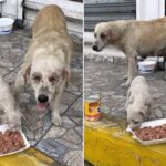 「お前だけでも生きなさい」母犬は空腹でも少ししか食べず、美味しい餌をすべて子犬に譲った