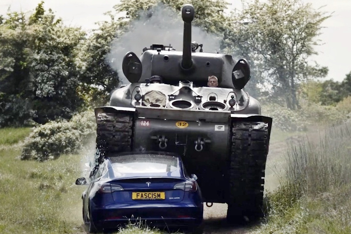 今回のデモは英国で行われ、第二次世界大戦の退役軍人である98歳の老兵が自らパフォーマンスに参加。この団体は「世界一の富豪イーロン・マスクが欧州の極右勢力を支援している」と主張し、「ファシズム」と書かれたナンバープレートを付けたテスラ・モデル3の上に、シャーマン戦車を突進させた。マスクへの政治的批判を意図したものだったが、結果は意外な方向へと進んだ。