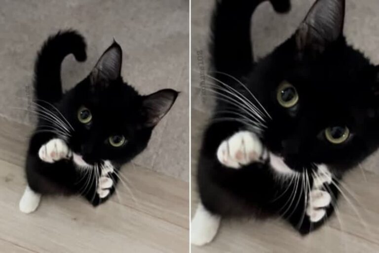 「オレと勝負する?」リングに立ったように前足をピンと上げ“ファイティングポーズ”を決めた猫、“怖すぎる!”