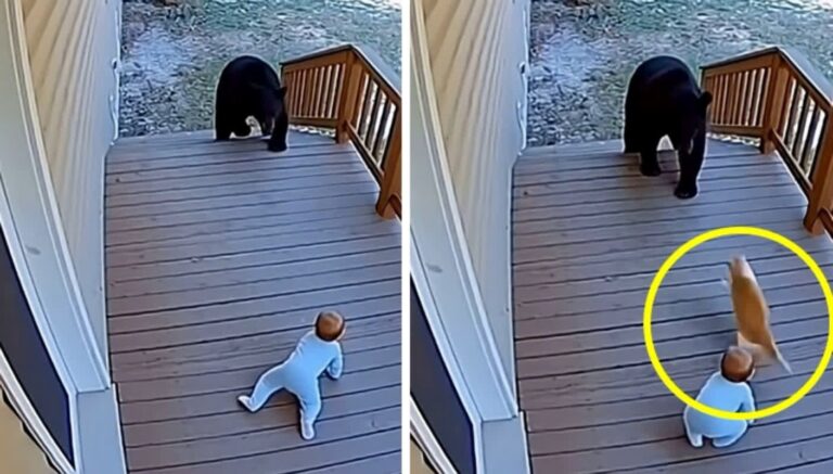 「巨大グマが赤ちゃんに接近…」その瞬間、1匹の猫が取った“信じられない行動”に世界中が驚愕!