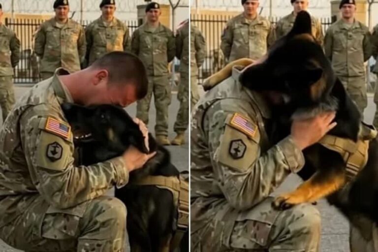 「最愛の相棒よ、泣かないで…」退役式で涙をこぼす兵士を包み込む、軍用犬の“世界一温かい抱擁”