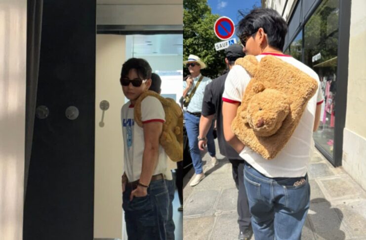 BTS V除隊後のパリ散歩が美しすぎる!クマのぬいぐるみバッグ×洗練ファッションで魅せる