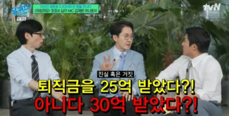 アナウンサーのキム・ジェウォンが退職金や資産に関する噂を否定し、一般的な勤労者と同程度の退職金を受け取ったと明らかにした。