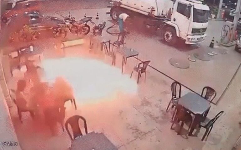 ブラジルのガソリンスタンドで、喫煙中の男性がマッチを落とし、瞬時に火災が発生した。幸い、ケガ人は出なかった。