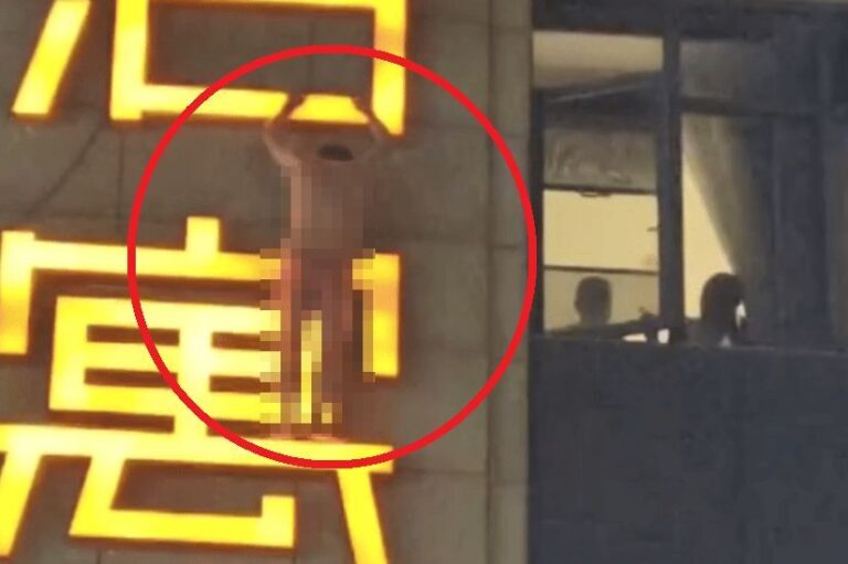 中国で、既婚男性が不倫を恐れ、ホテルの外壁に下着姿でぶら下がる騒動が起きた。