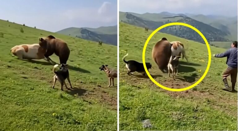 平和な牧草地で、牧場主が牛を見回っていると、野生のクマが牛に襲いかかる緊急事態が発生した。