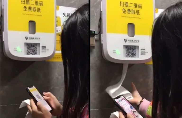 中国の公衆トイレでQRコードを読み取り、広告を視聴しないとトイレットペーパーが受け取れない仕組みが導入。