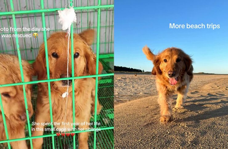 中国の犬肉市場から救出されたゴールデン・レトリバーが英国で新しい家族と幸せな生活を始めた。