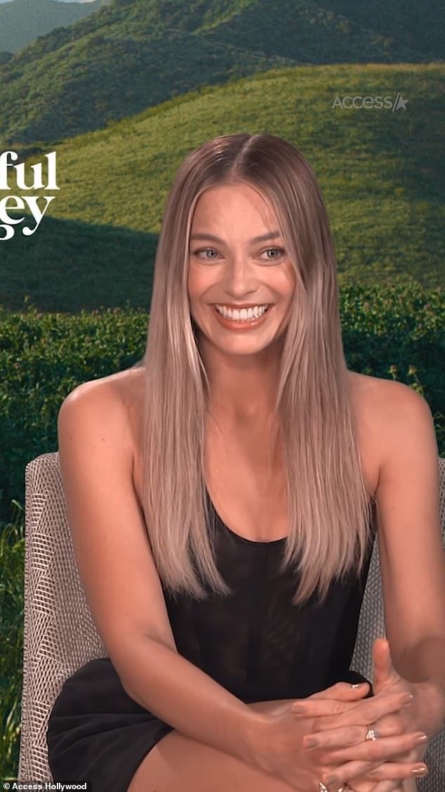 マーゴット・ロビーが新作映画のインタビュー中に息子の泣き声に驚き、共演者と楽しいやり取りを交わした。
