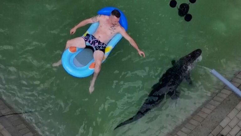 【驚きのペット】2.4m巨大ワニと一緒に泳ぐ男性、30年以上の絆と信頼が育んだ特別な日常